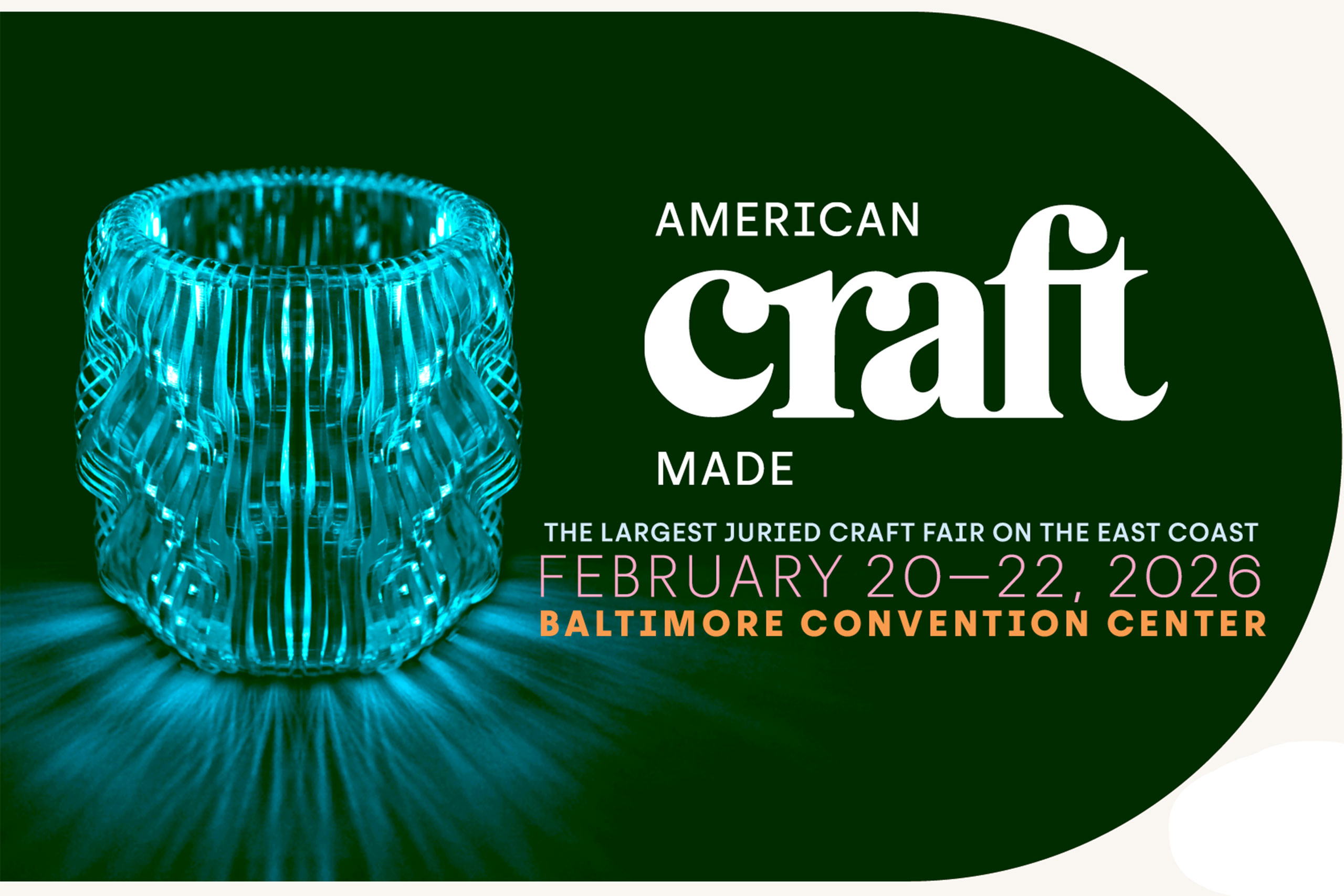 The American Craft Council’s (ACC) flagship event, American Craft Made Baltimore, will return to the Baltimore Convention Center February 20 through February 22, 2026. Now in its 49th year, American Craft Made Baltimore is an annual immersive event that brings together over 400 accomplished artists and makers, 10,000 attendees, and dozens of local partner organizations from across the East Coast for shopping, demonstrations, hands-on experiences, and connection through craft. Visitors can shop work by artists from around the country, participate in hands-on activities, view craft demonstrations, attend related events and parties, and much more.