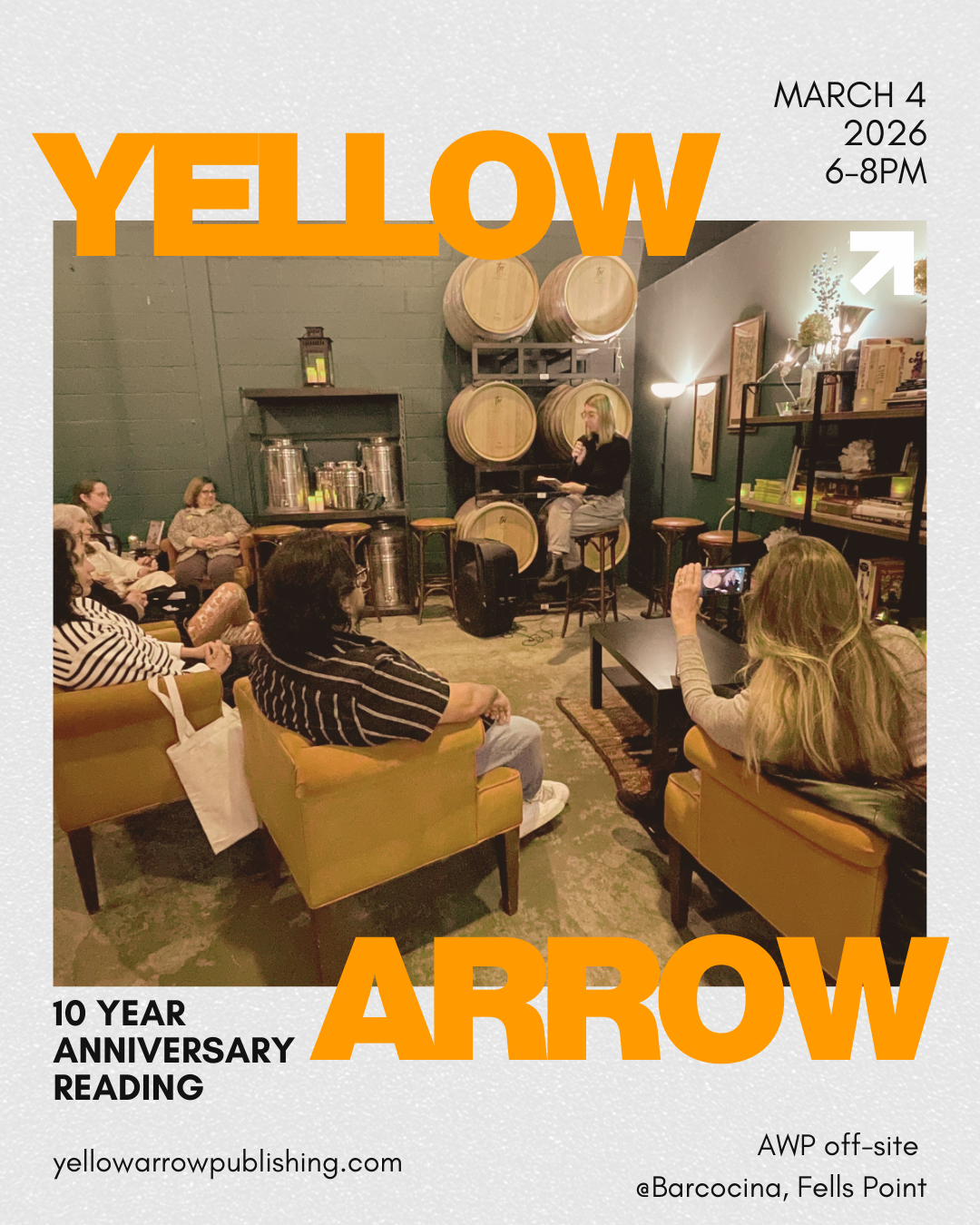Join Yellow Arrow Publishing as we celebrate ten years of empowering women-identifying writers! We will feature ten readers representing the diversity of storytelling we have shared through Yellow Arrow Journal, Yellow Arrow Vignette, and the Yellow Arrow chapbook series. We believe every writer has a story to tell, and every story is worth telling. Let’s honor these incredible stories in community.