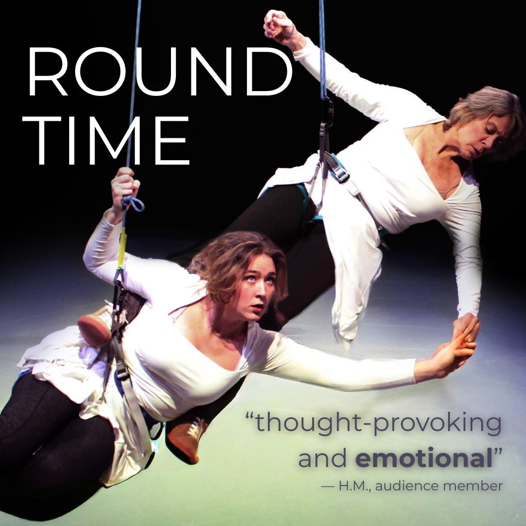 Round Time is a striking and soulful aerial performance born of the urgent present from aerialist, Mara Neimanis (Air Heart, Naomi’s Flight, Swing). With performance partner Morgan Mincer, Neimanis creates a duet for two generations of airborne women, bearing aloft audio testimonies from community voices of women of many ages.