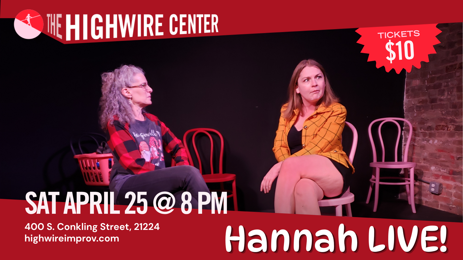Hannah LIVE: The One-Han Show! — Hannah LIVE! is Baltimore's only one-Han show, full of monologues, characters, songs, skits, and security.