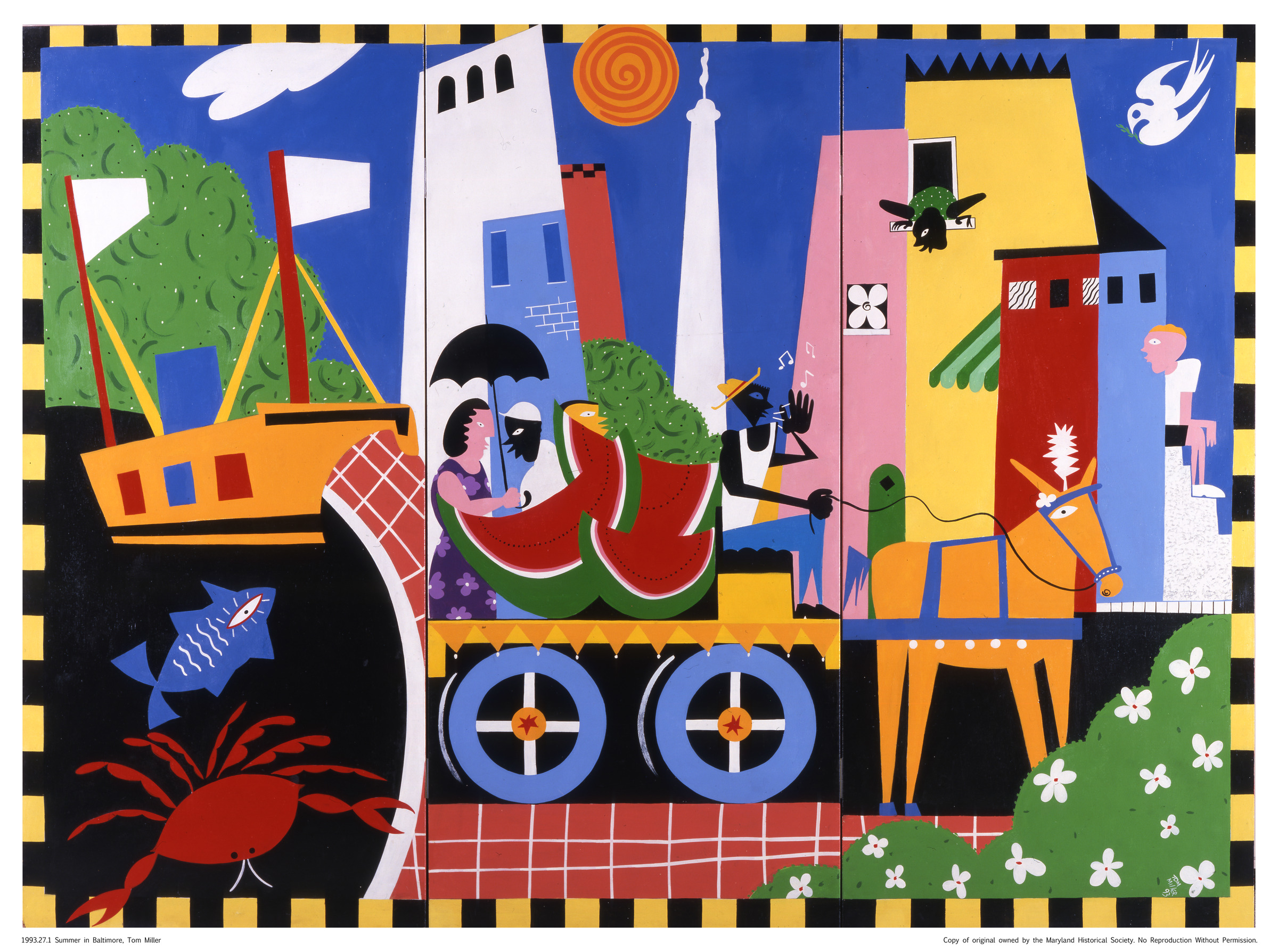 In celebration of Tom Miller Day, enjoy a day of free admission to the Maryland Center for History and Culture. View Tom Miller’s Summer in Baltimore triptych painting, on display in Collecting Maryland: Art, Artifacts, Community.