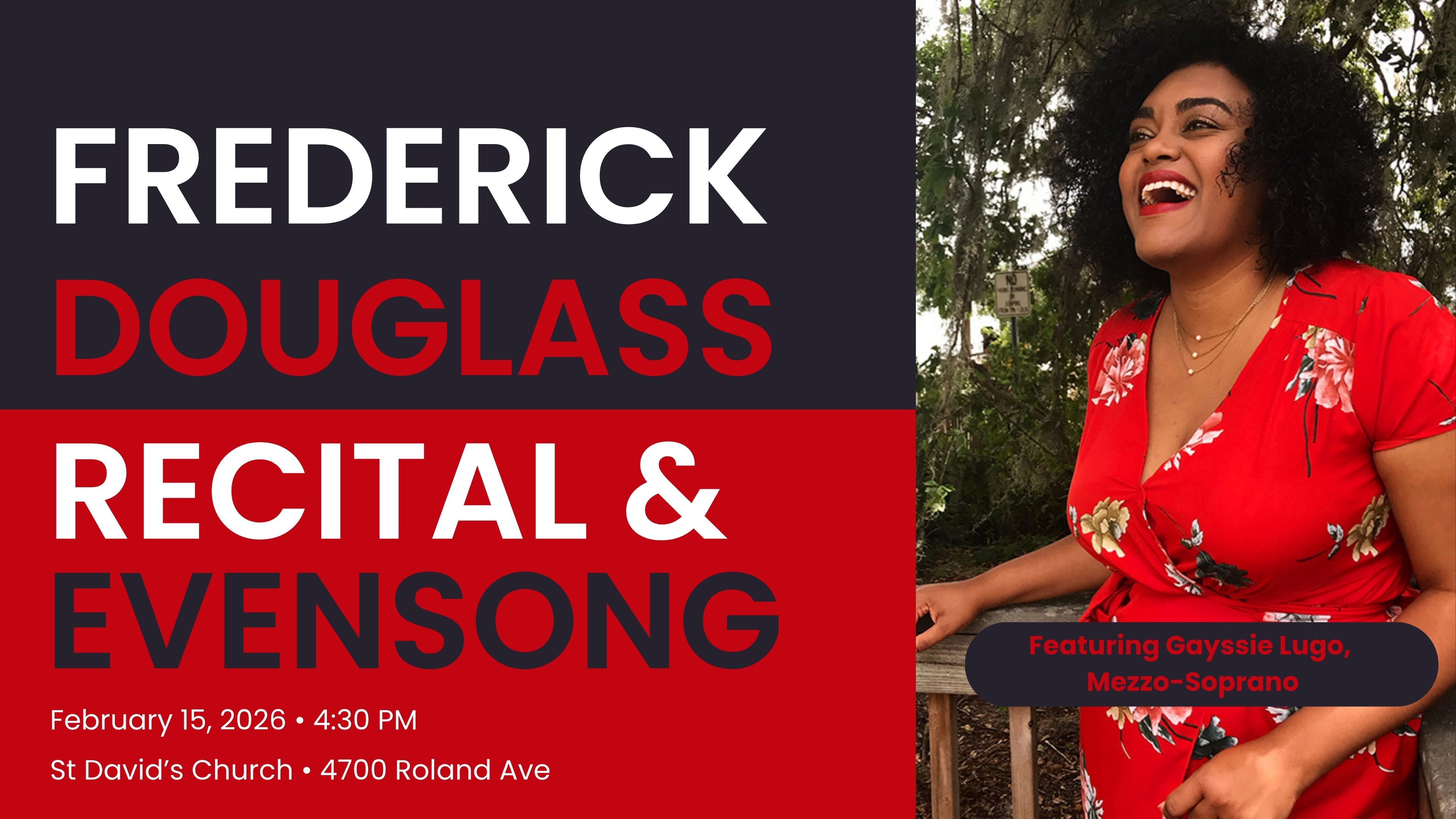 The life and legacy of Frederick Douglass is honored in a musical offering with poetry and music featuring themes of truth and justice, beginning with a recital by mezzo-soprano Gayssie Lugo at 4:30 pm.